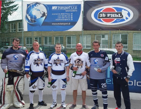 Zľava: Martin CMOREJ (MV TRANSPORT Prešov), Martin DŽUPINA (HBC UNIVERZÁL Košice), Dávid ANTAL (HBC UNIVERZÁL Košice), Martin HOPKOVIČ (HBC ECOMAX SII. Prešov), Martin SMREK (MV TRANSPORT Prešov), Matúš LÚČ (HBC KNIGHTS CACTUS Bardejov)